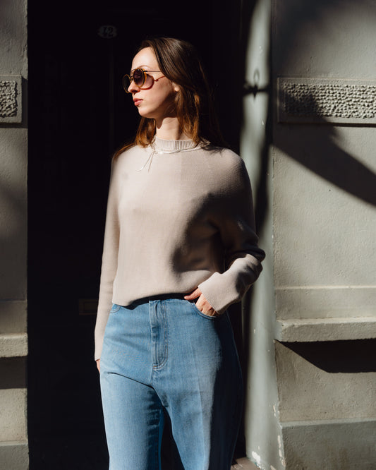MERINO WOOL OVERSIZED T-SHIRT Beige