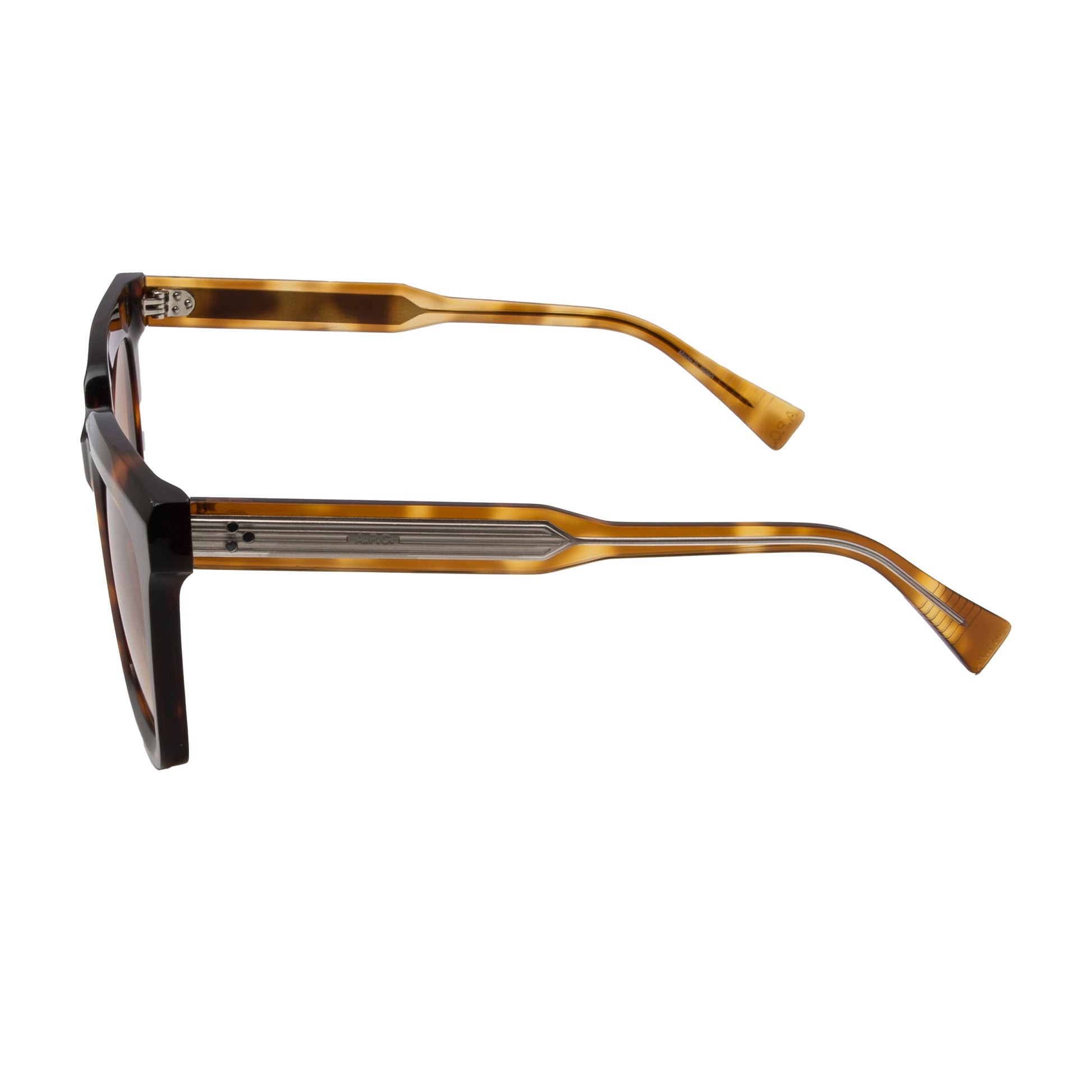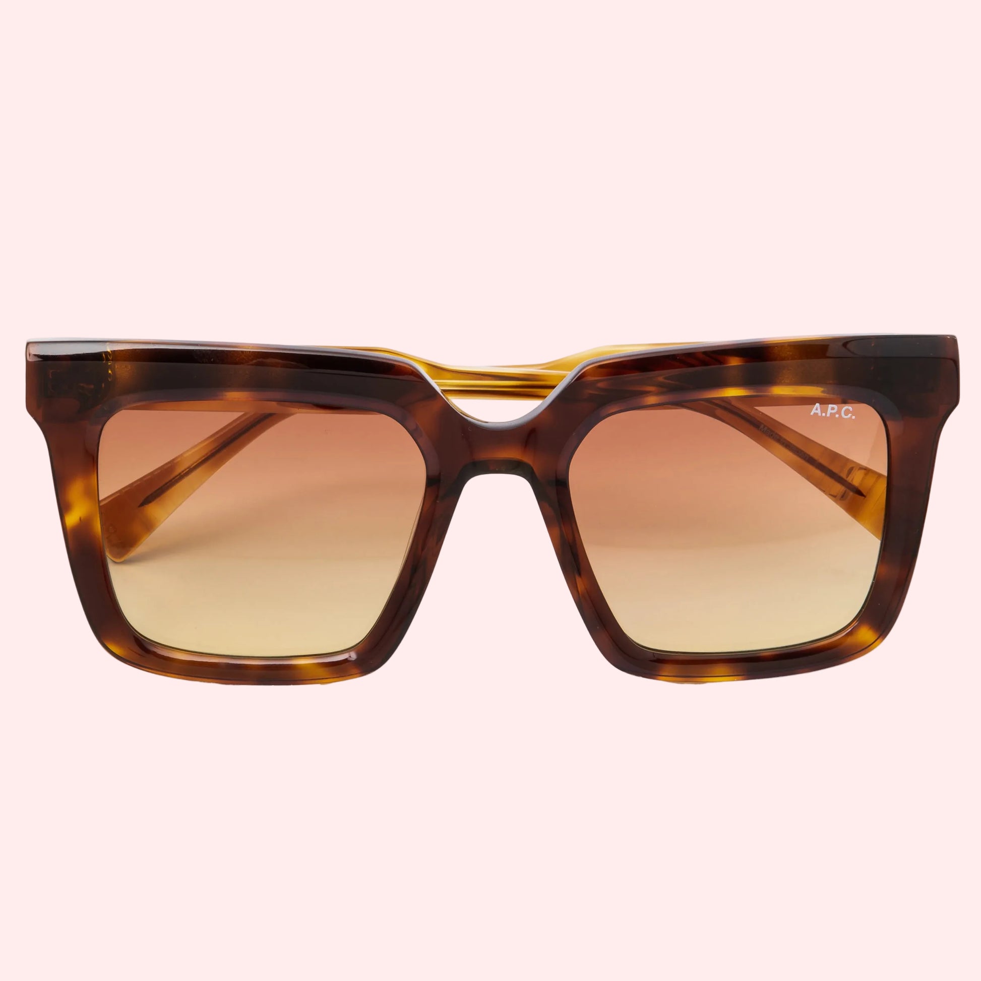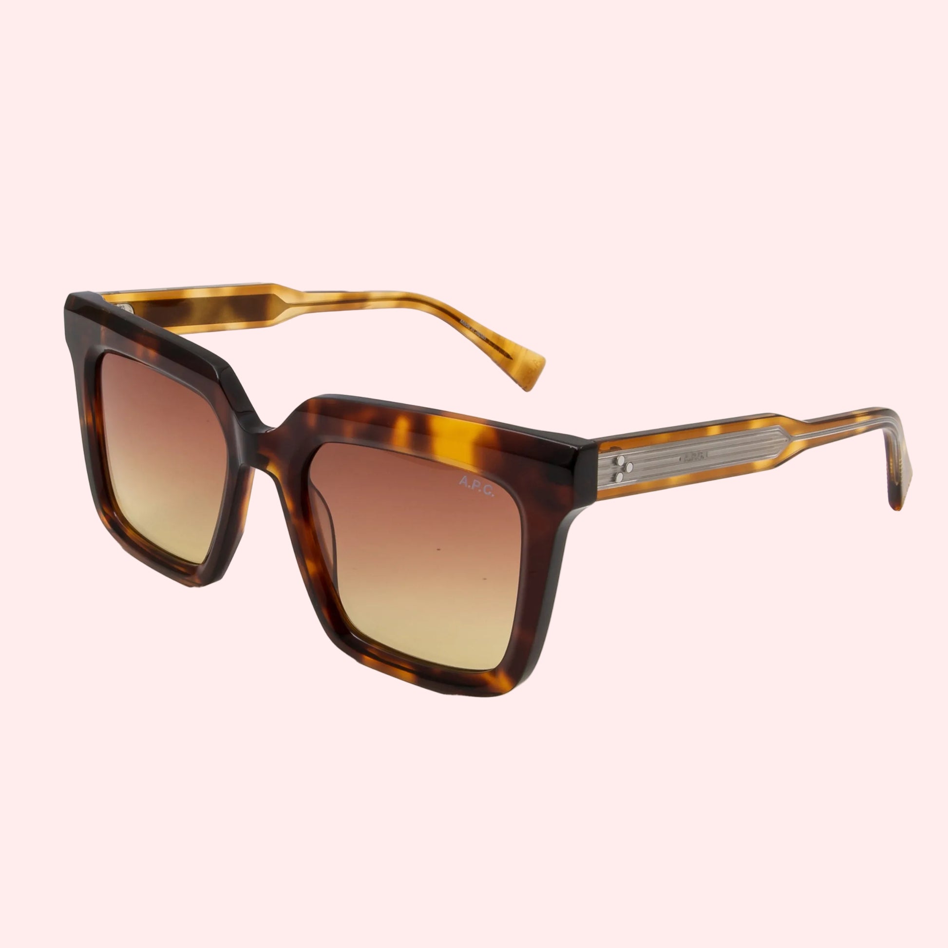 Larger, square shaped sunglasses with whiskey-marron colored tortoiseshell frame and brown gradient lenses from Acetate and Steel