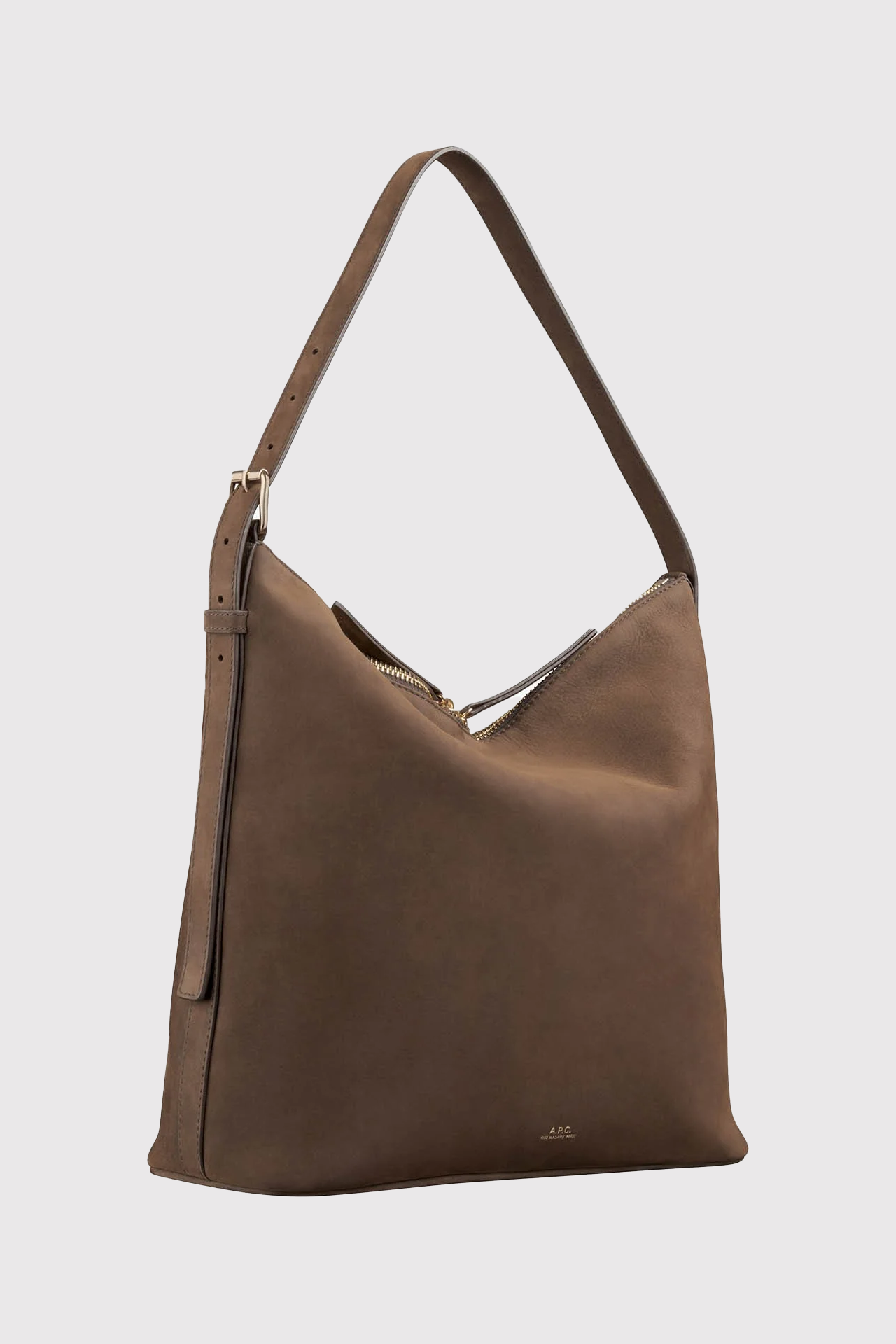 - Embossed goldtone "A.P.C. Rue Madame Paris" logo