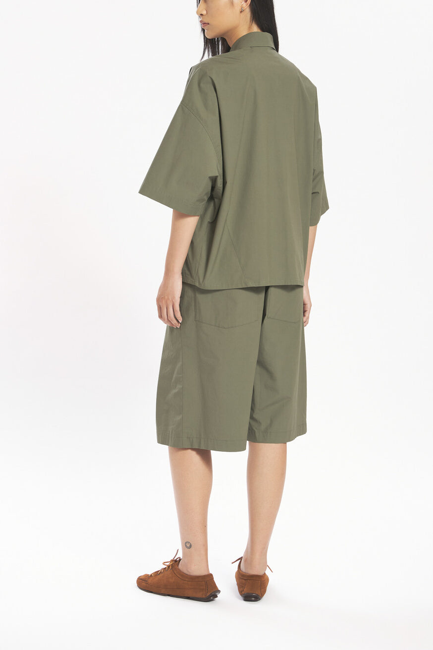 With a crisp but flexible feel from parachute stretch poplin, this oversized short-sleeve shirt combines a relaxed fit with chest patch pockets and a classic collar for a modern, versatile look.