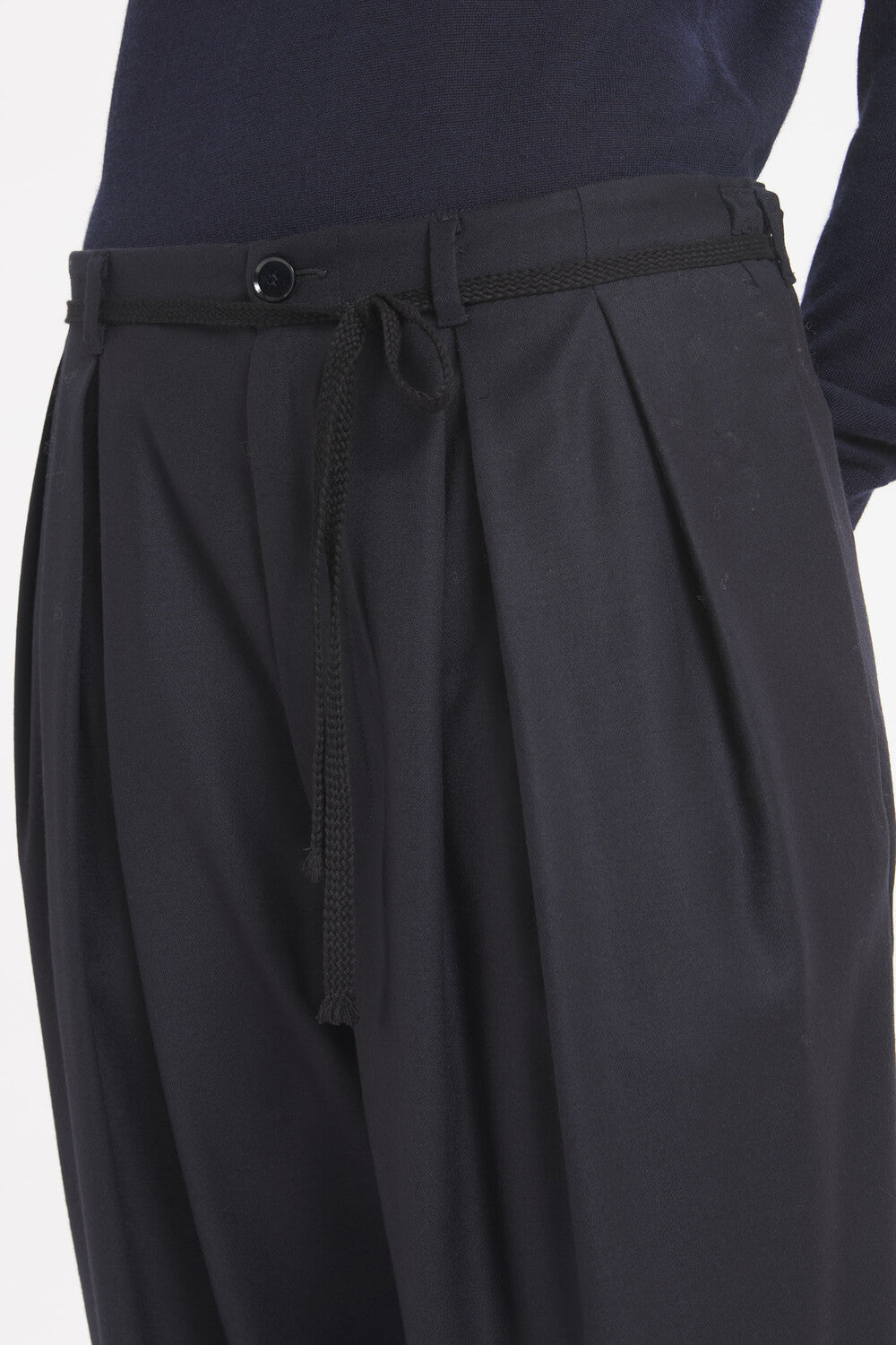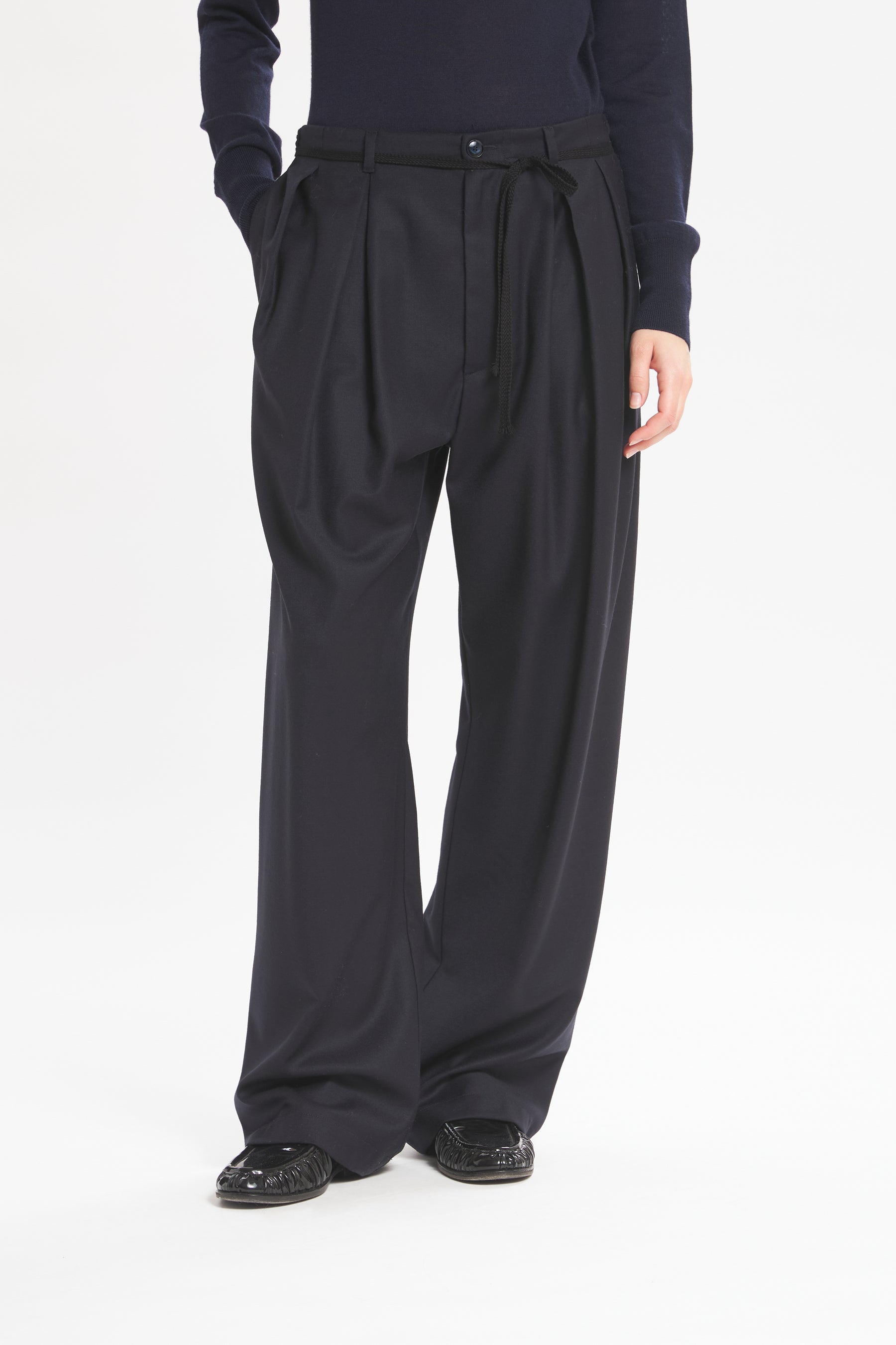Designed with an elasticated back and two pleats for a sharp yet relaxed look, these trousers feature a wide-leg silhouette and are crafted from high-quality wool flannel, offering both comfort and a sophisticated finish.