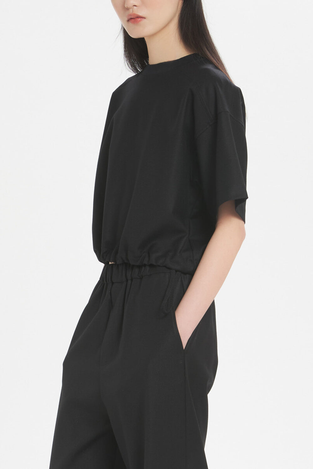 Crafted from high-quality wool flannel with a refined texture for a soft, comfortable feel, this short-sleeved t-shirt features a ribbed neckline and adjustable drawstring for added versatility.