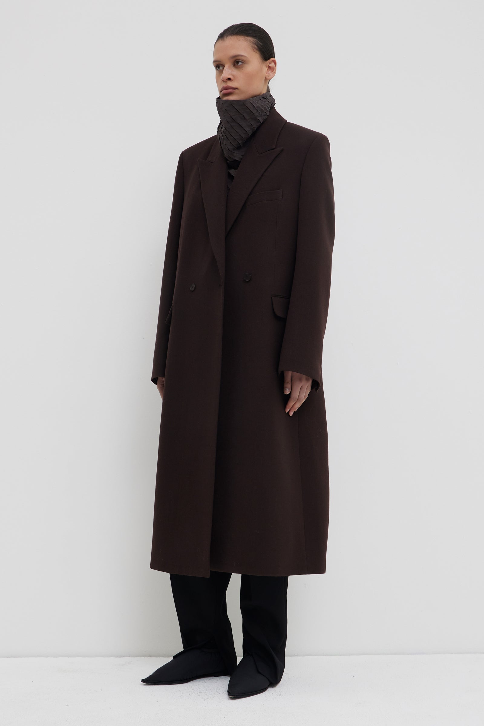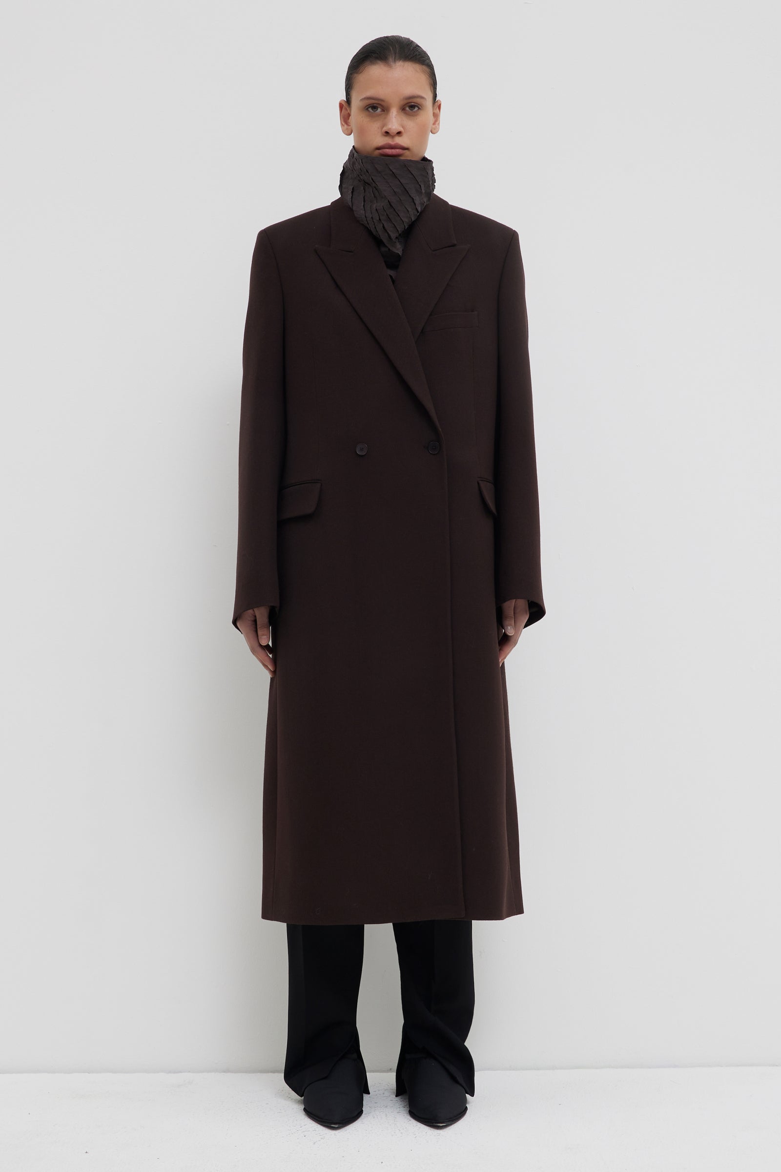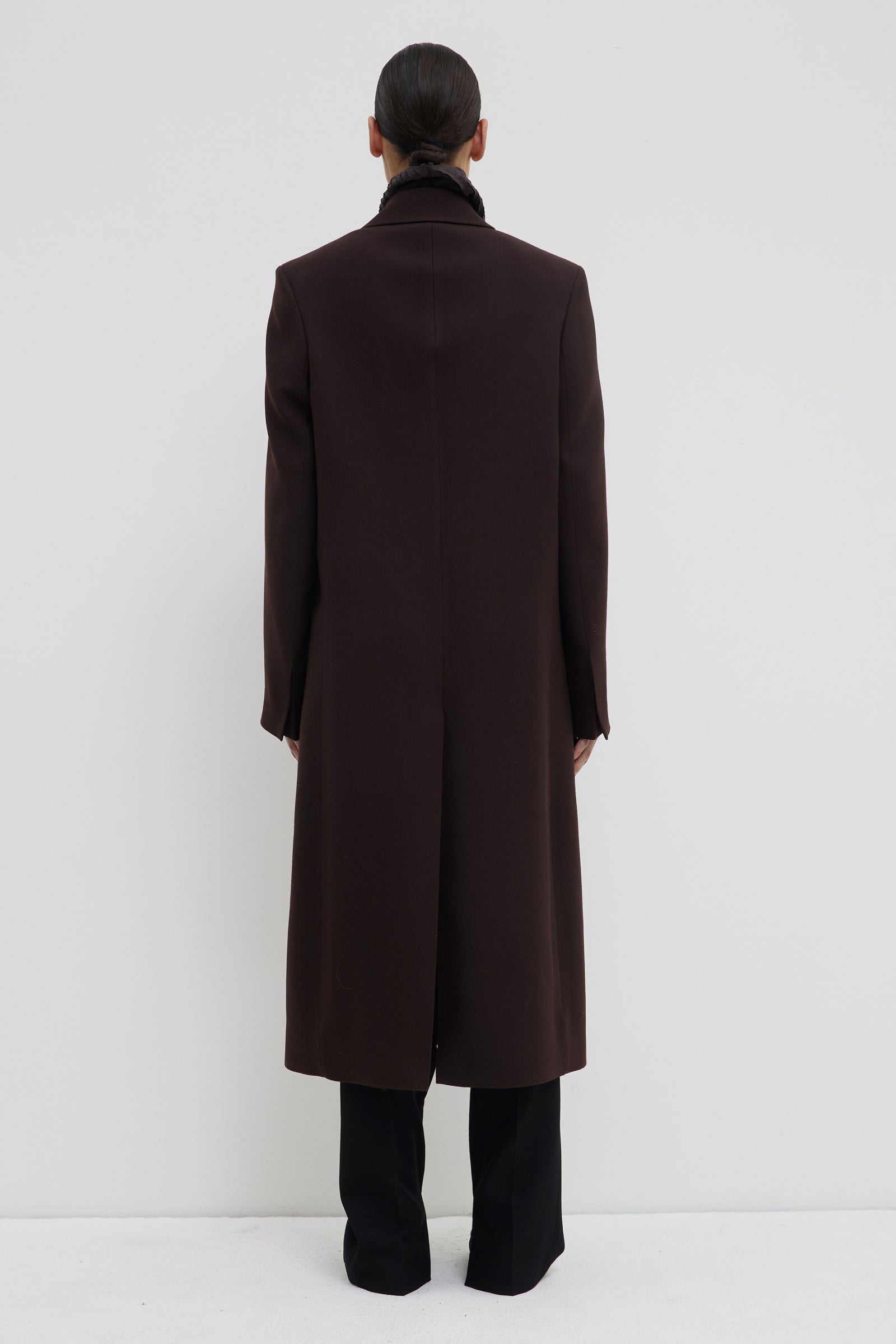 LONG TAILORED COAT WITH SHOULDERPADS & WIDE LAPEL