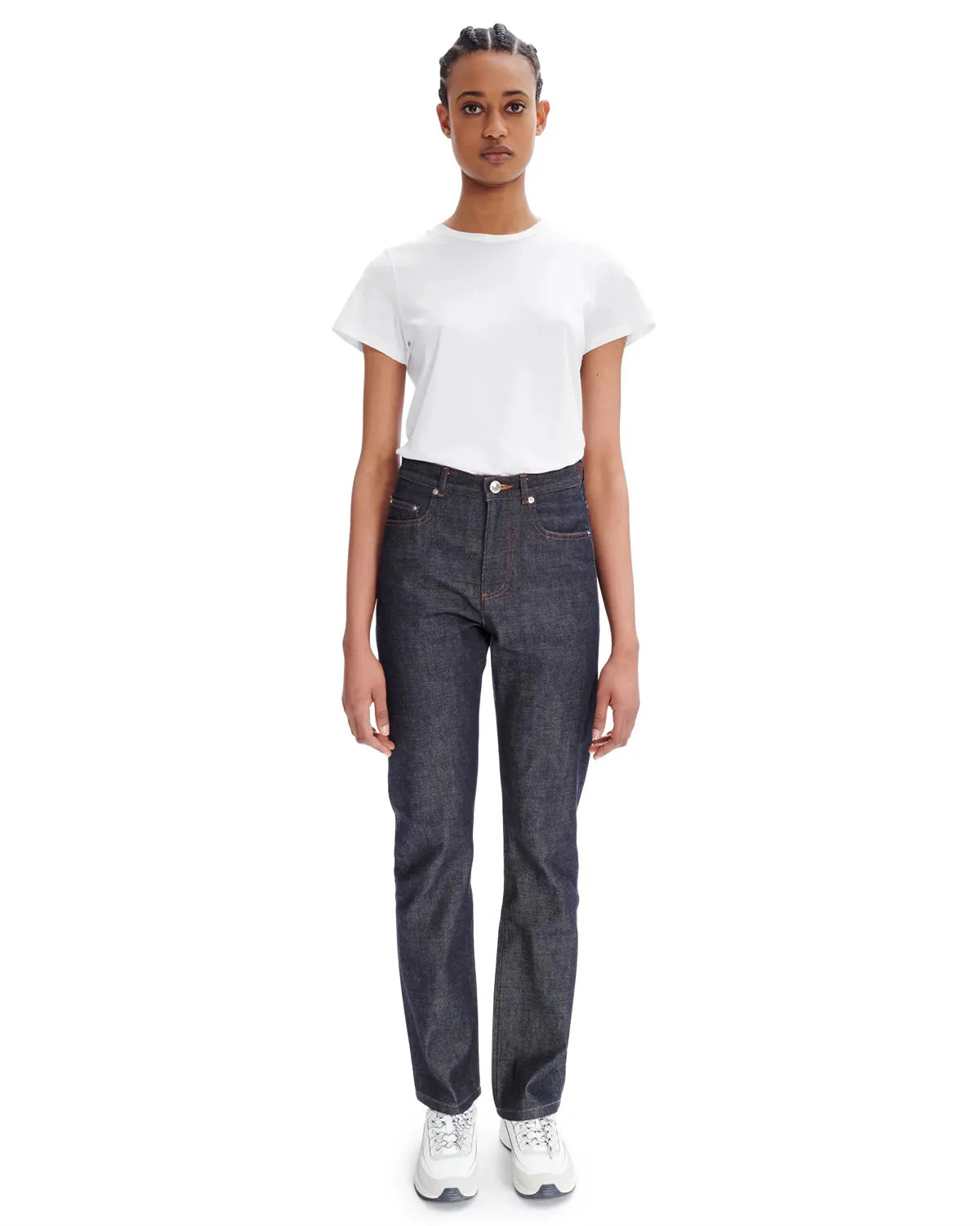 Discover the perfect balance of vintage style and modern sustainability with A.P.C.'s Petit Standard jeans. Made from Japanese material and featuring a fitted and straight leg, these A.P.C. unisex beauties offer both comfort and a modern, sophisticated, look.