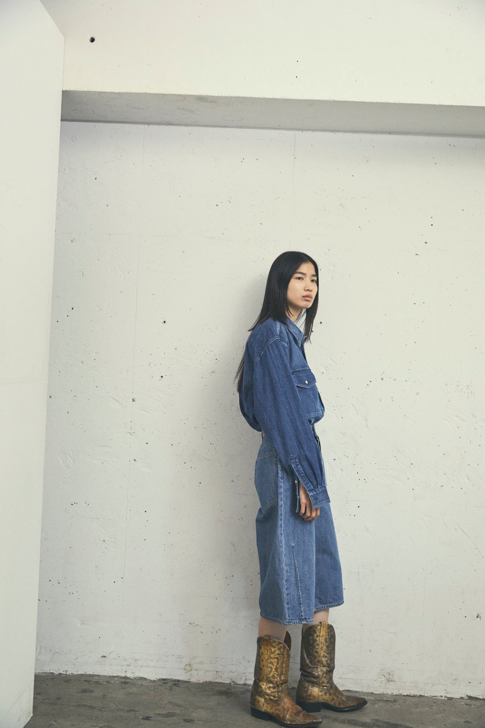 A unique, three-dimensional wide silhouette. A voluminous design that overturns the concept of conventional denim shorts. The wide yet calculated silhouette gives a sophisticated impression.