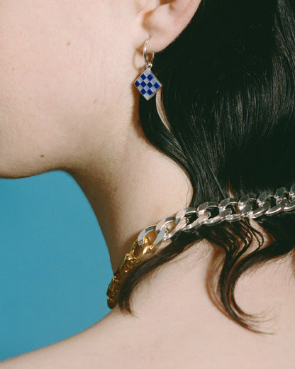 This punk influenced necklace made from lapis lazuli, reconstructed turquoise and coral is a contemporary interpretation of a selfmade collector's necklace. Once treasures and finds were traded for refined material such as silver and lapis lazuli. Subtle rebels with a love for surrealism, Wouters & Hendrix are drawn to unexpected combinations of materials and techniques, this necklace gently adorns your body with tales in silver and gold.