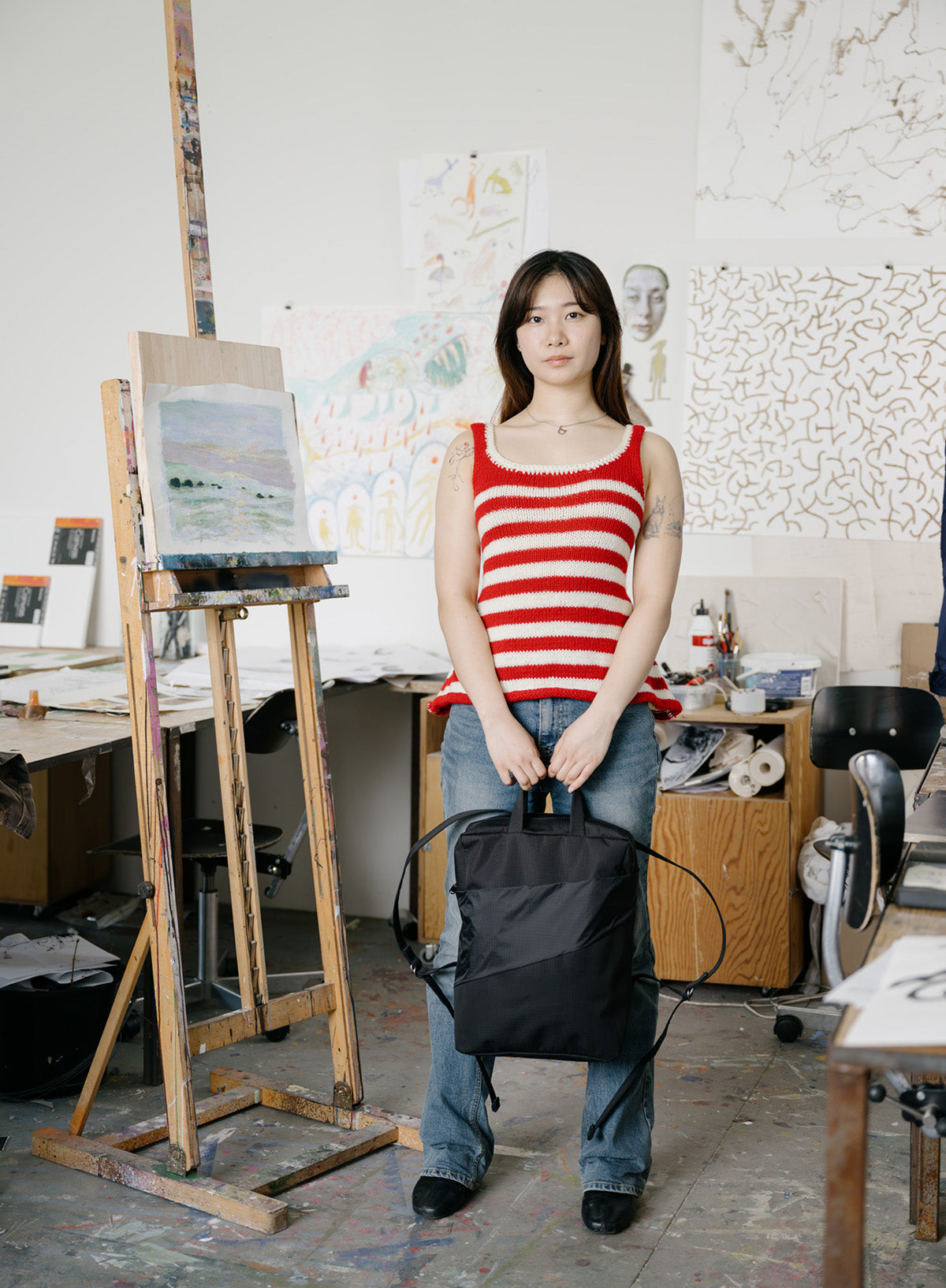 As a child she already wants to create a minimalist and peaceful place, simply because she doesn't like to have a lot of 'stuff' laying around. With this same spirit, she would design the bag to replace all bags.