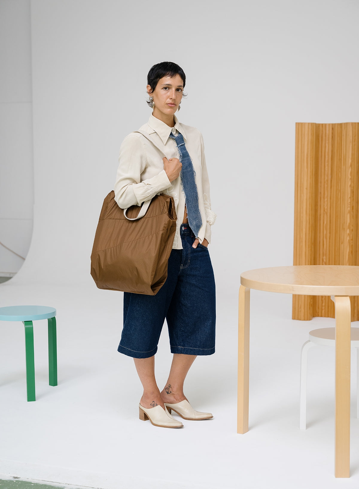 Susan Bijl explored new ways of working with colour, where The Flash did not define the division. Instead of two colours, they chose predominantly one or three. The monochrome version takes centre stage, highlighting the contours of the bag, with the Flash visible only in its construction—the result: a fresh reinterpretation of an iconic collection.