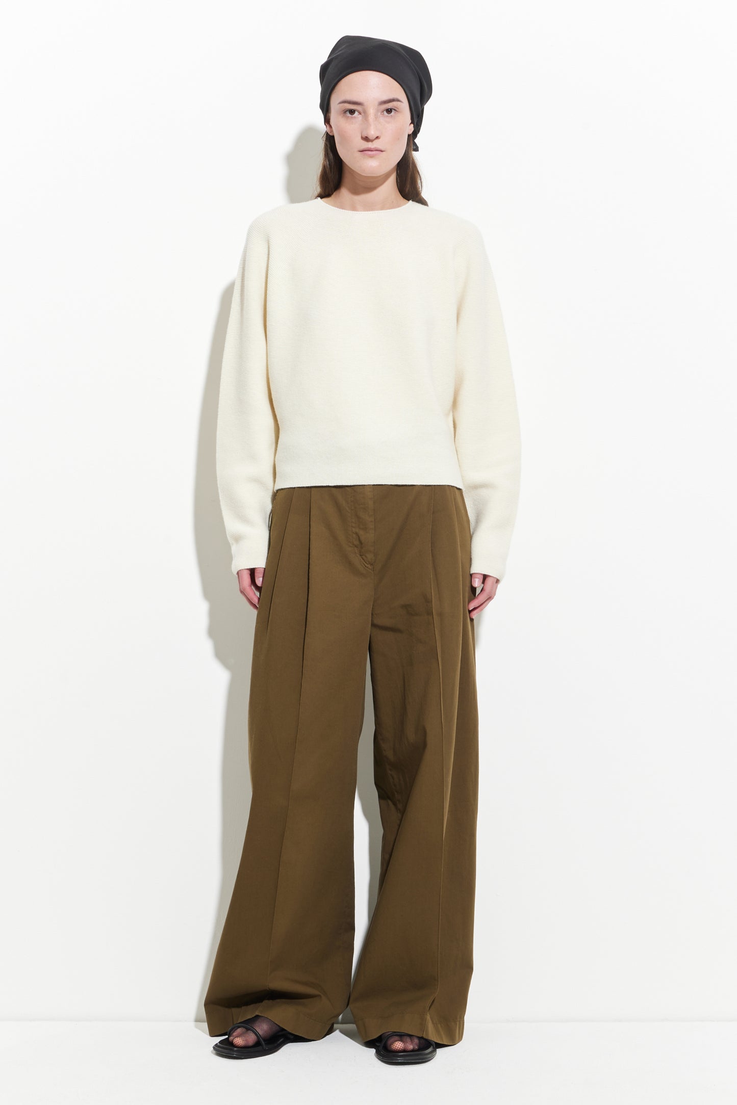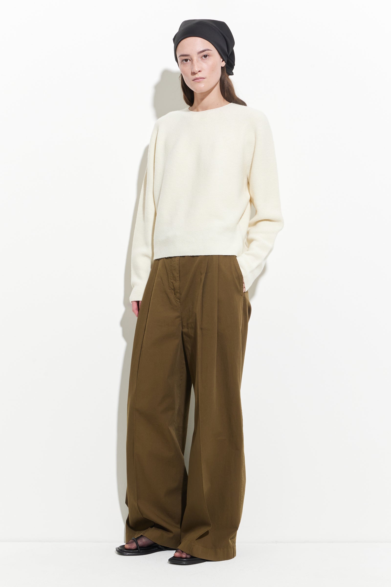 seamless sweater with boxy fit and round neck