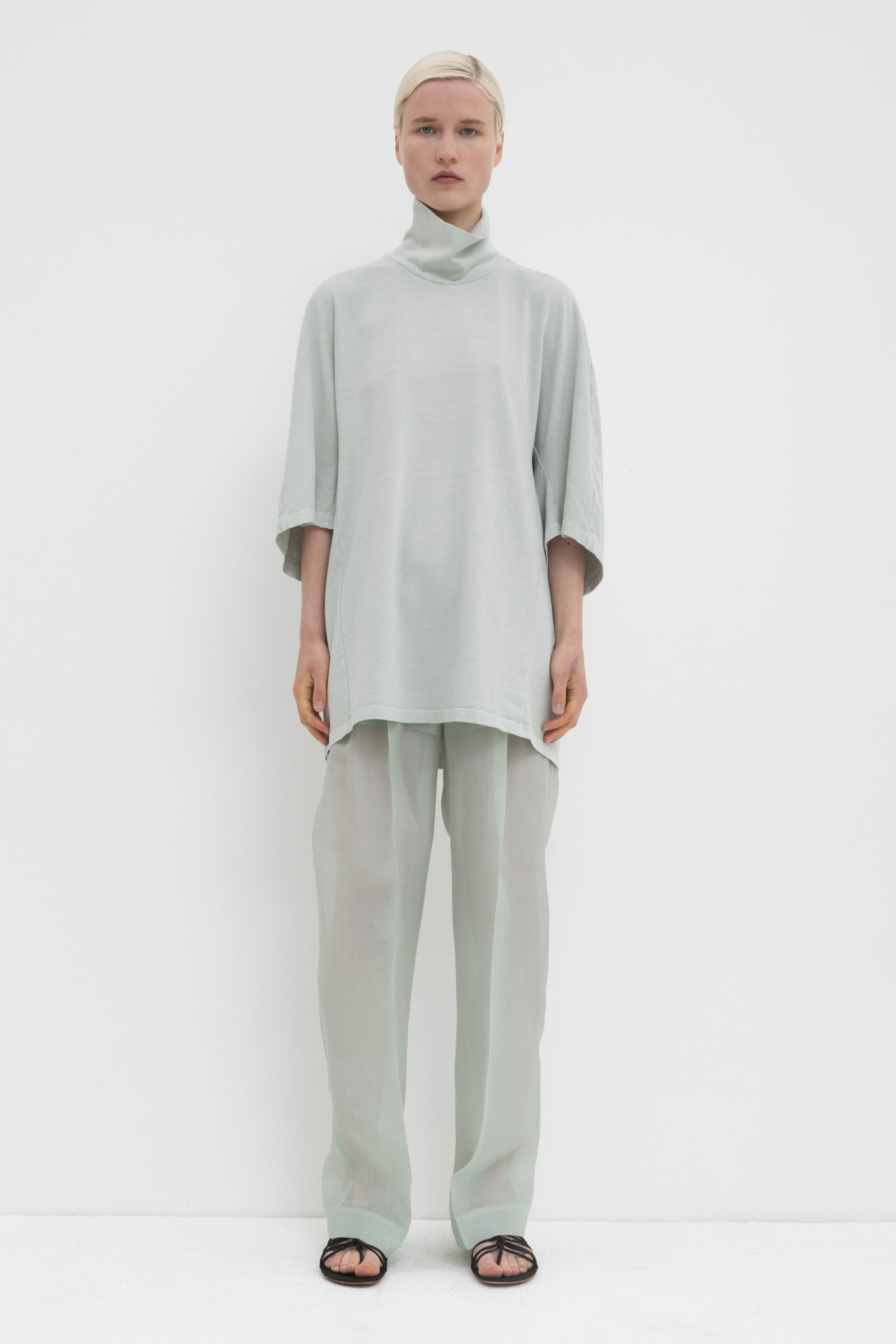 GARMENT DYED COTTON JERSEY T-SHIRT WITH TURTLE NECK