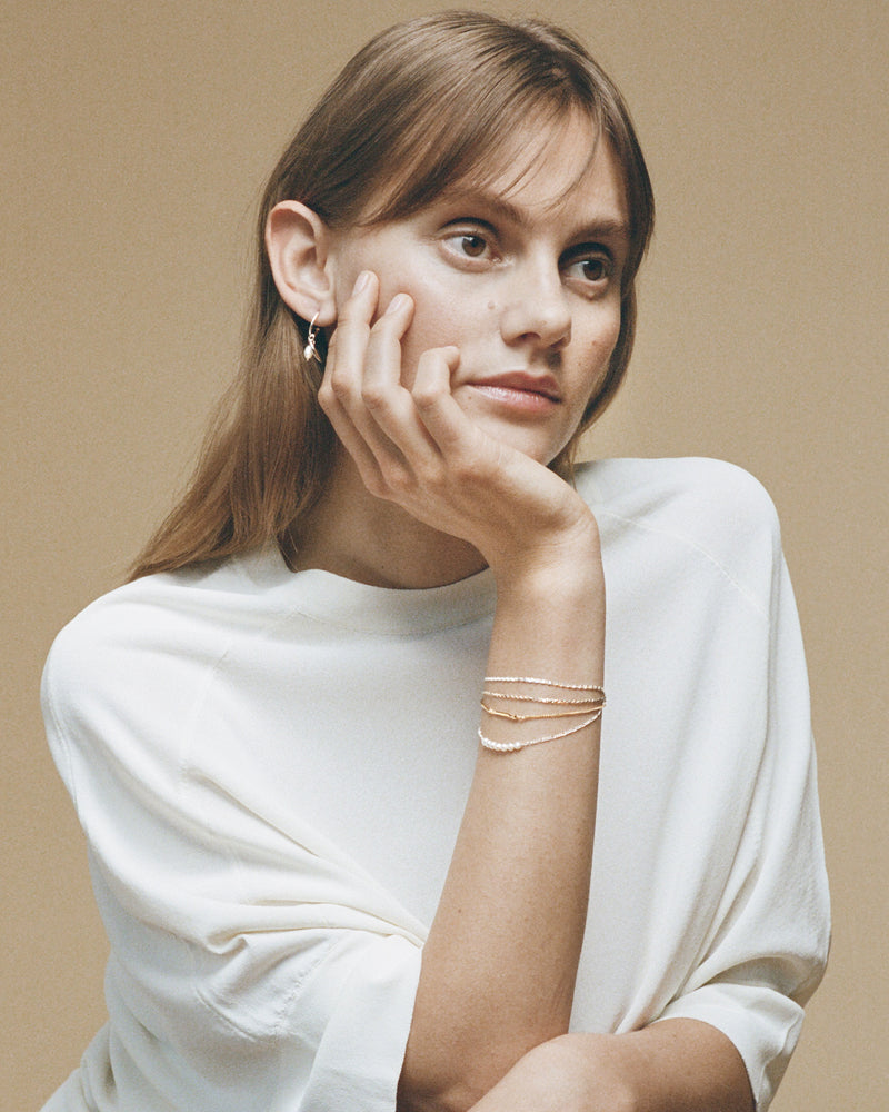VOYAGES NATURALISTES Hoops with leaf and pearl in gold plated Sterling silver 925